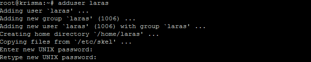 25. Setelah instalasi dan konfigurasi selesai lalu kita menambahkan user dengan perintah #adduser (nama user baru)